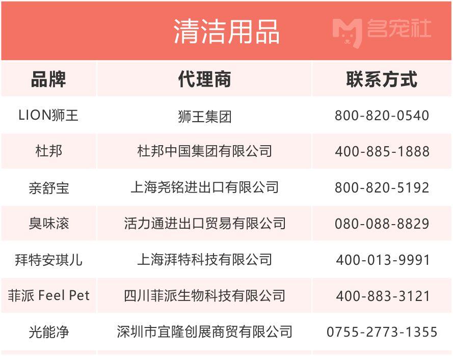 清潔用品一般養寵家庭用的不多,但是犬舍、貓舍、寵物店、學校等實體從業者應該用的非常多,比較知名的國際品牌有美國的杜邦、親舒寶、日本的LION獅王,還有一些后起之秀像臭味滾、拜特安琪兒、菲派 Feel Pet等等也都非常不錯,大多以消毒劑和除味劑為主。